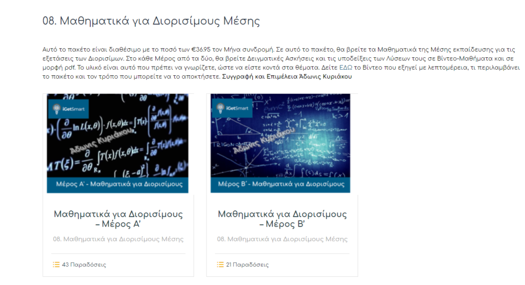 Μαθηματικά για Διορισίμους Μέσης Εκπαίδευσης από τον Άδωνι Κυριάκου. Έτοιμα Βίντεο-Μαθήματα, Εκατοντάδες Ασκήσεις, με τις Αναλυτικές Λύσεις τους. Μόνο με €36.95/μήνα συνδρομή. Πατήστε στο link και διαβάστε προσεκτικά την περιγραφή. https://igetsmart.online/stm_lms_course_category-el/mathimatika_gia_diorisimous_mesis/ Δείτε εδώ το βίντεο με την περιγραφή του πακέτου, τον τρόπο της Δωρεάν Εγγραφής και τον τρόπο πληρωμής. https://www.youtube.com/watch?v=T7Wo2SBqGiU Για οποιαδήποτε άλλη πληροφορία μη […]